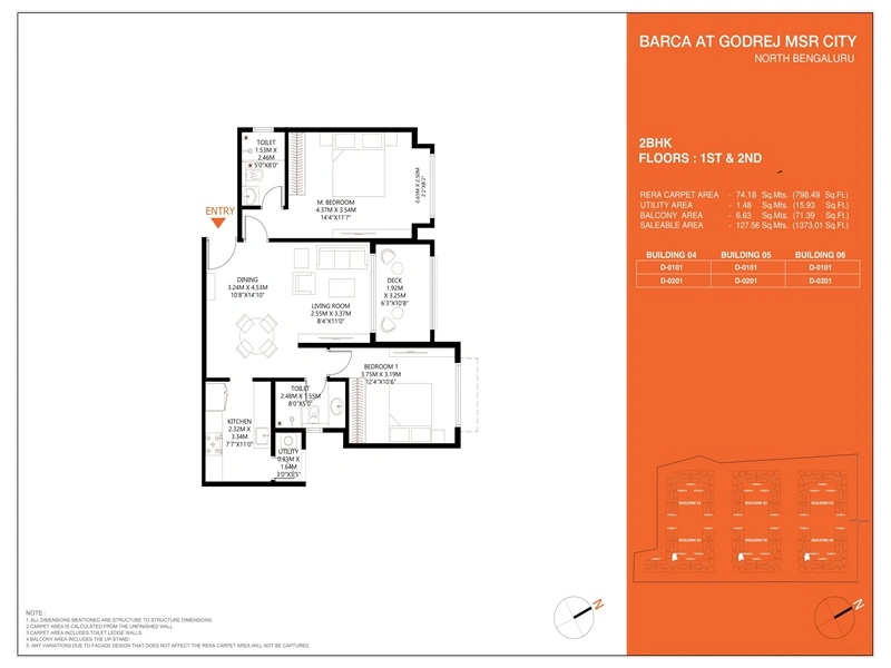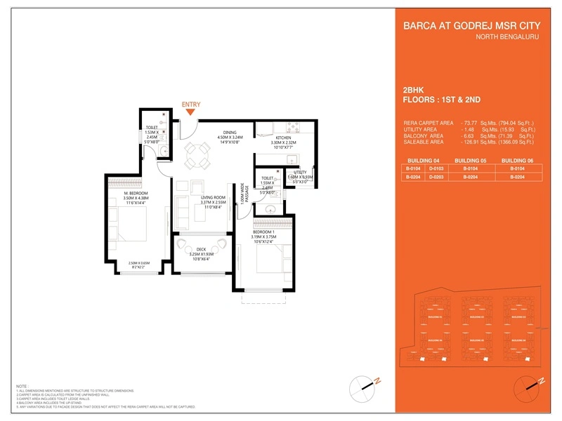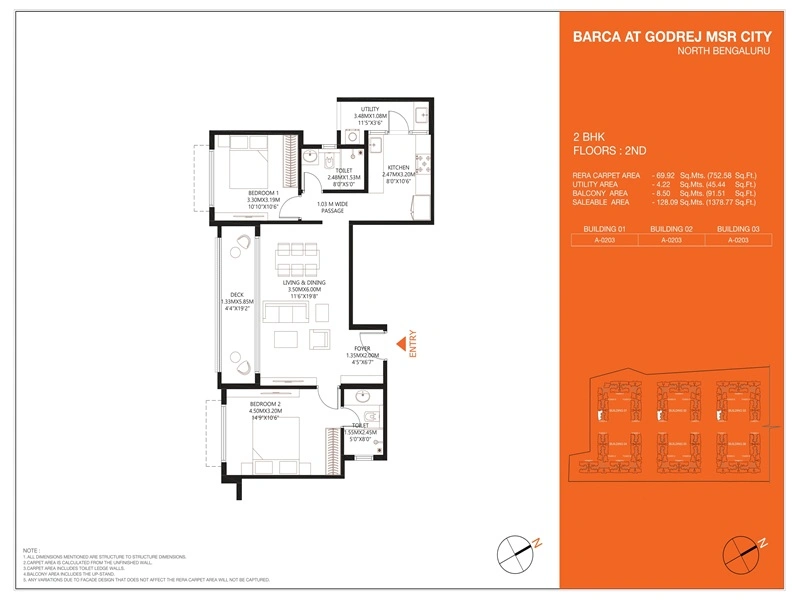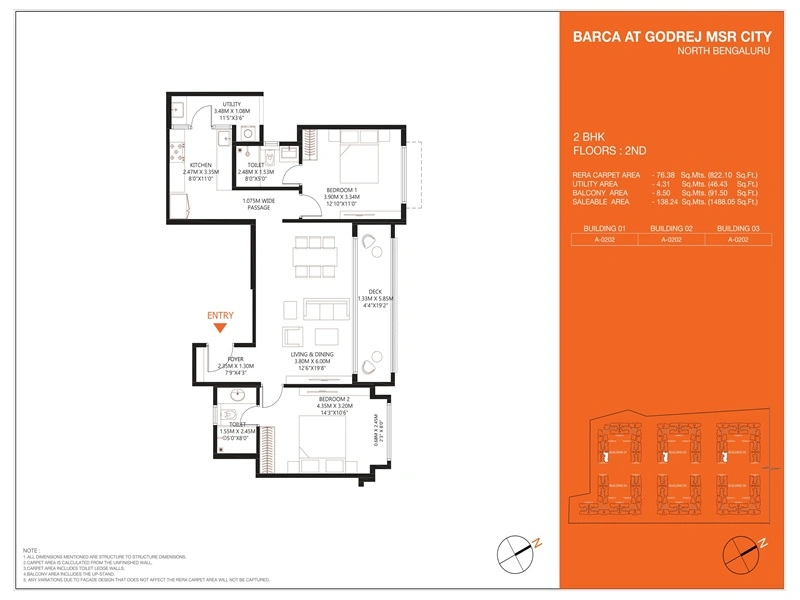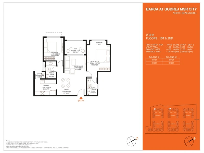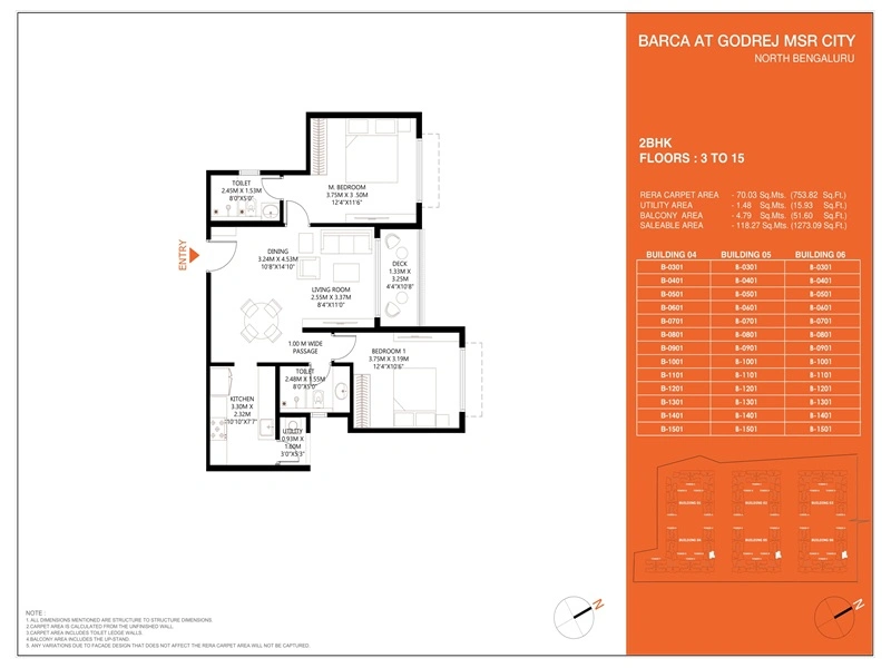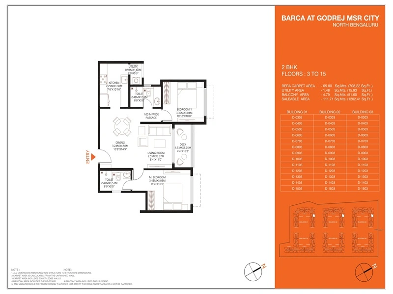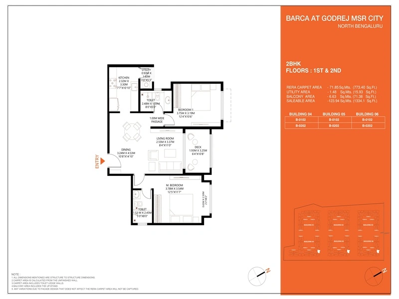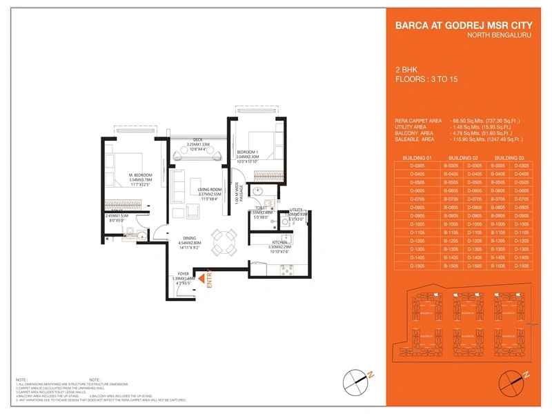 Phase 2 of Godrej MSR City features spacious 2 and 3 BHK apartments with floor plans ranging from 711 sq. ft. to 1,193 sq. ft. The development consists of 602 residential units spread across 8 towers. Each building is structured with 2 basements, a ground floor, and 15 upper floors (2B+G+15), ensuring ample living space and modern vertical design.