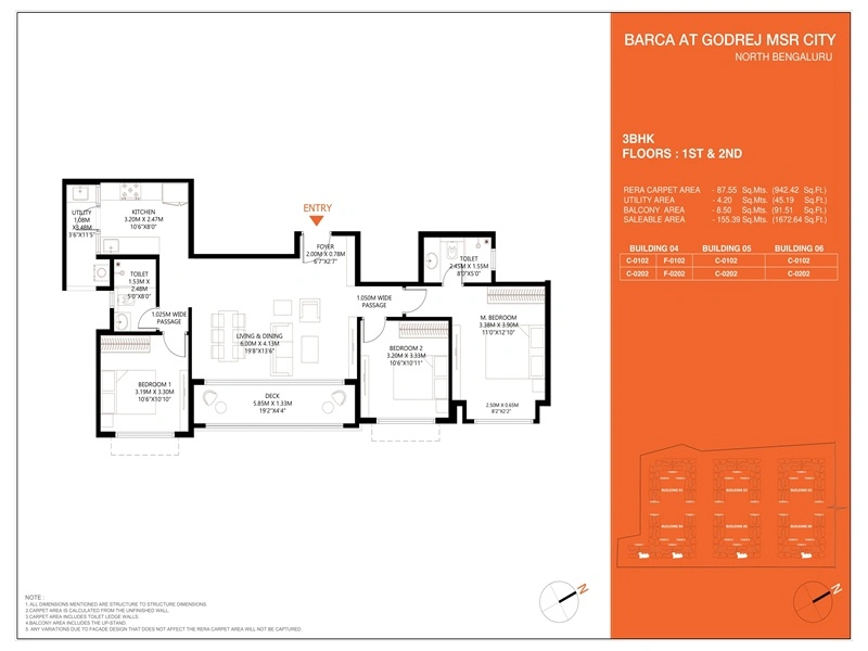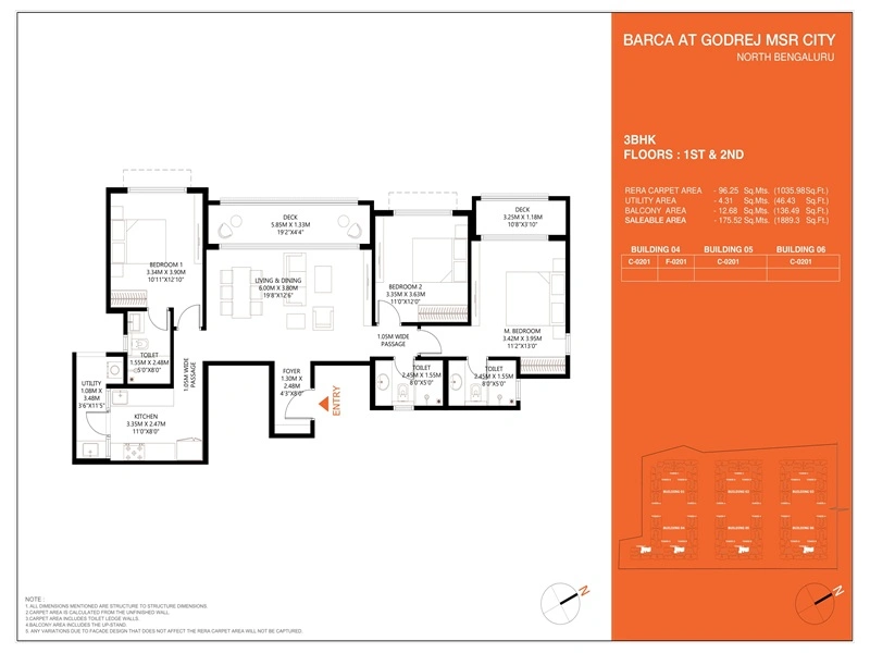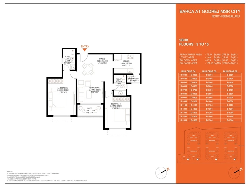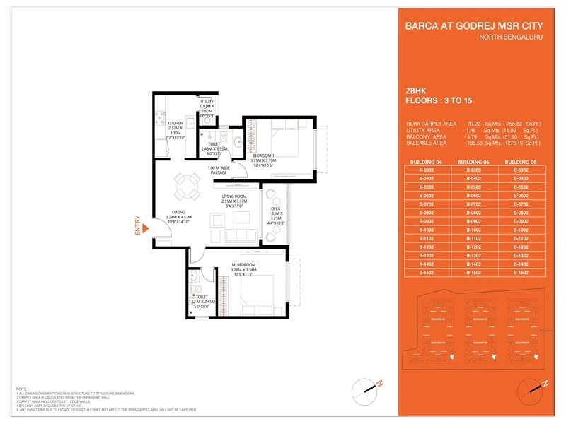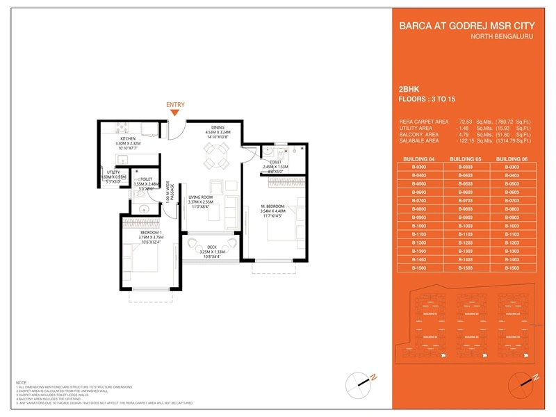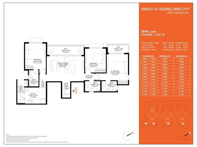 Godrej MSR City Phase 1 offers 2 and 3 BHK apartments with floor plans ranging from 1,186 sq ft to 1,876 sq ft. The project includes 1,961 units across 31 towers in 6 buildings. Each building has 2 basements, a ground floor, and 15 floors (2B+G+15).