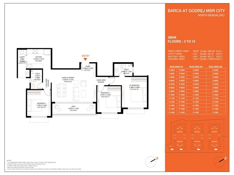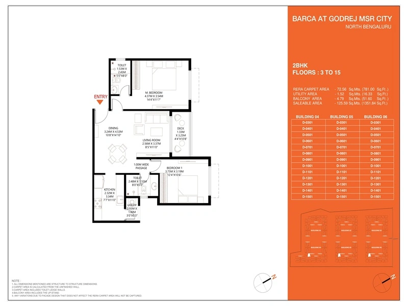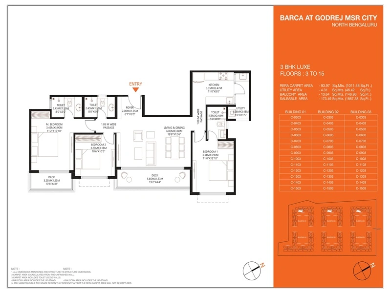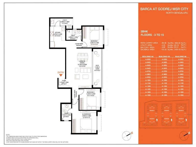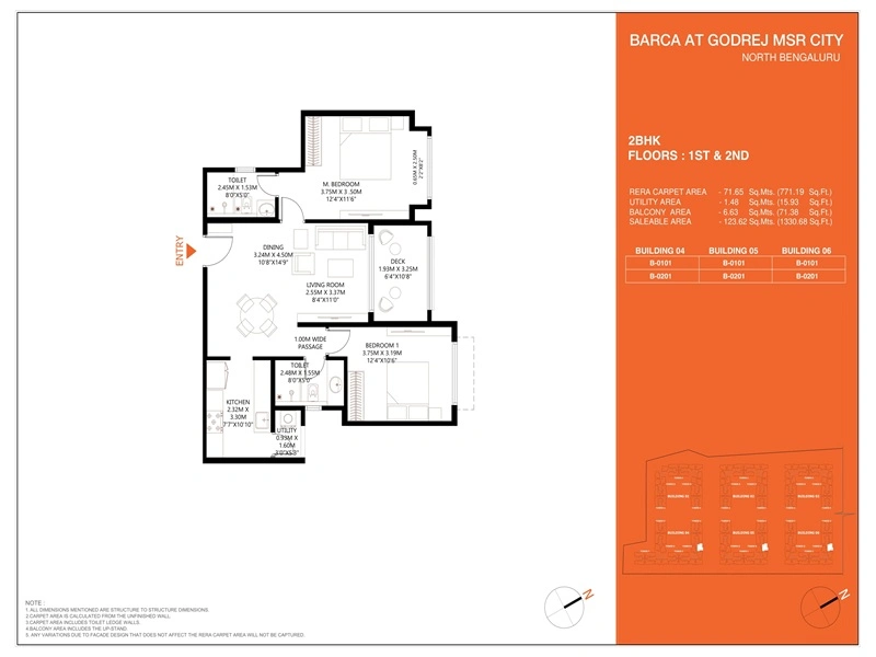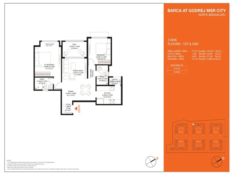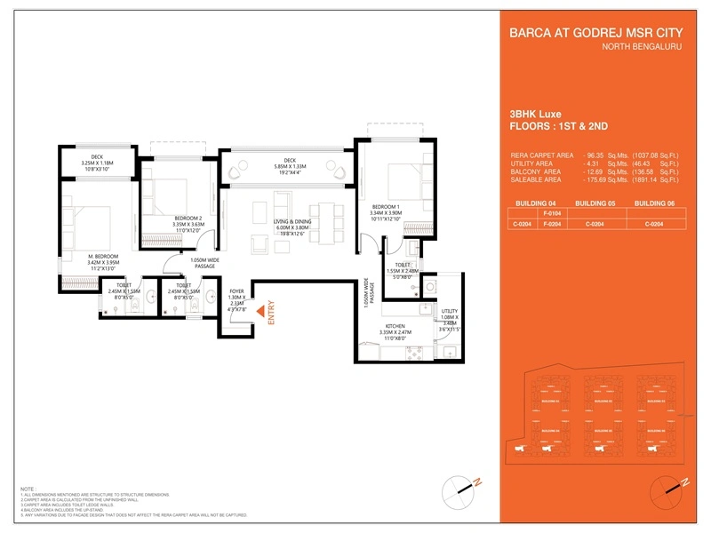 Godrej MSR City Phase 1 offers 2 and 3 BHK apartments with floor plans ranging from 1,186 sq ft to 1,876 sq ft. The project includes 1,961 units across 31 towers in 6 buildings. Each building has 2 basements, a ground floor, and 15 floors (2B+G+15).